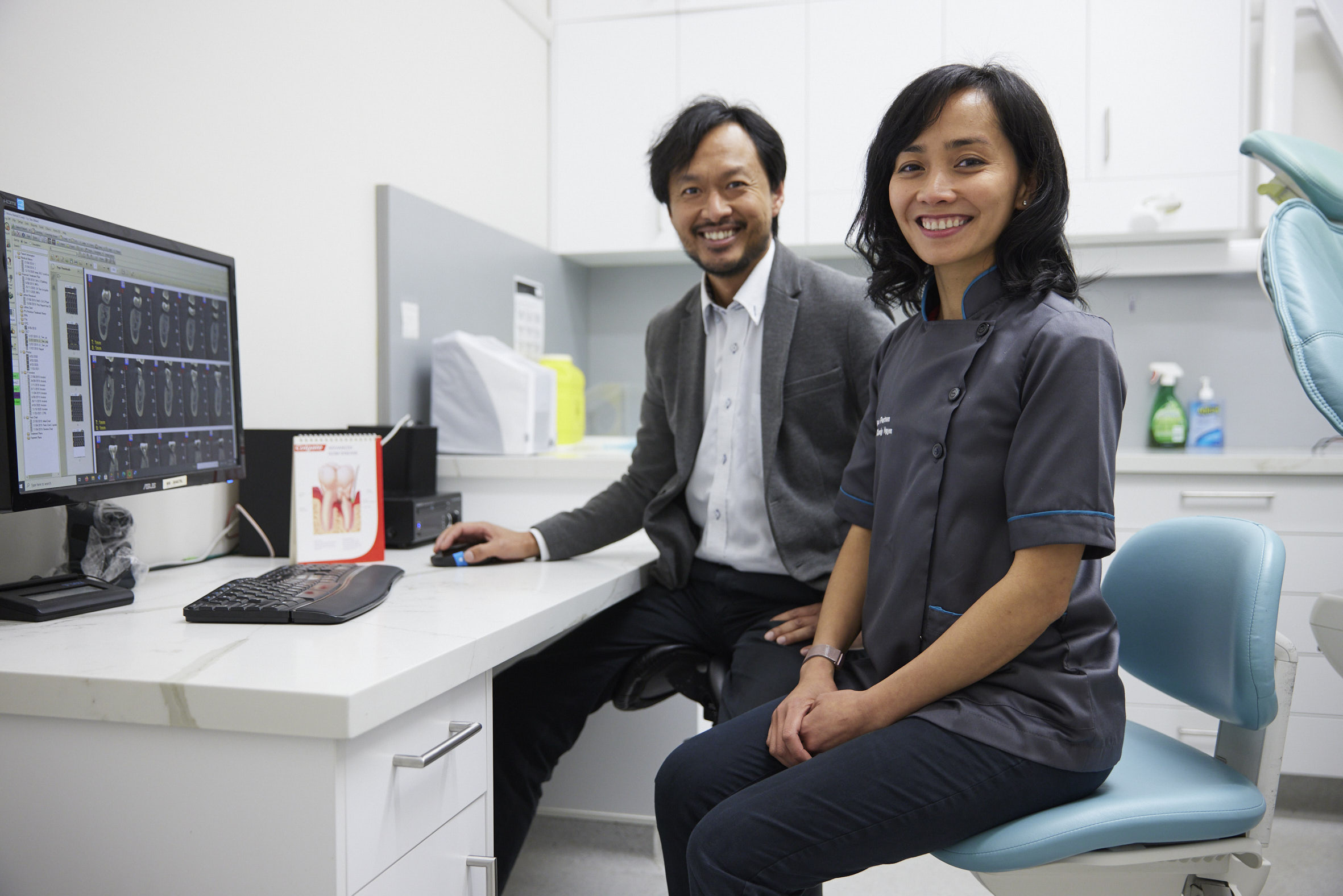 We begin by obtaining an accurate diagnosis, which involves measurement of gum pocket depths and assessment of radiographic bone levels. Treatment is in two phases: Firstly, we decontaminate the root surfaces with a thorough deep clean (often under local anesthetic). Secondly, we teach our patients brushing techniques that aim to clean underneath their gums to prevent the return of gum disease causing bacteria. We then review patient progress three months later and determine if they have resolved well enough to get into the maintenance care phase (like servicing a car) or need further treatment, whether it be a repeat of non-surgical treatment or surgical treatment.
